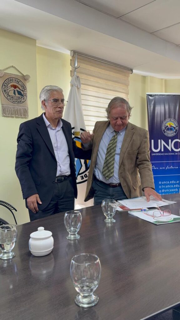 En la Universidad de Catamarca se firmó un convenio entre el propietario de la Finca El Pichanal, el doctor Rogelio J. Allignani, y las autoridades de la Facultad de Salud, con la presencia del rector de la casa de altos estudios Oscar Arellano.